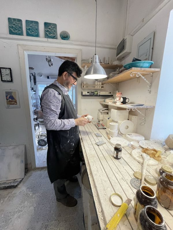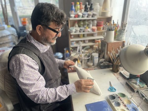 13 Aralık’ta Büyükada’daki atölyesinde açılacak yeni sergisi “Nakş-ı Derya” öncesinde Fikret Parlak’la buluştuk; adaya geliş yolculuğundan seramik sanatını kendisine öğreten sanatçı Turgur Tuna ile kurduğu ustalık–çıraklık hikâyesine, atölyesindeki üretim sürecinden ada yaşamının ritmine kadar pek çok şeyi konuştuk.