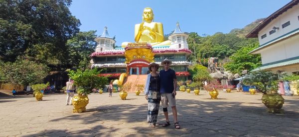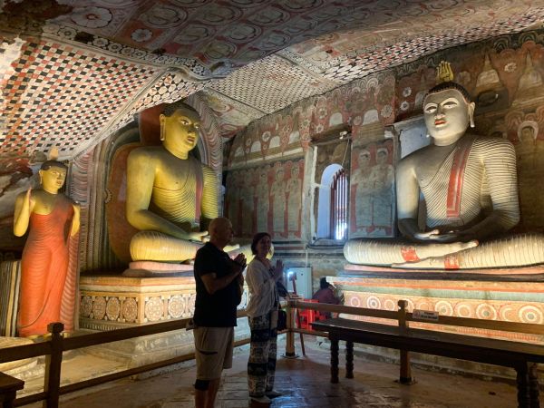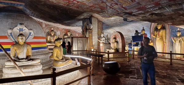 Kahvaltıdan sonra Dambulla Mağara tapınakları görmeye gidiliyor. Yola çıkmadan önce de biliyorduk ama rehberimiz yeniden uyarıyor. Sri Lanka’da tapınaklara girerken kadın ve erkekler dizlerinin altına uzanan kıyafetler ve dekolte olmayan üstler giymeliler. Tapınak girişlerinde ayakkabılar çıkarılıyor. Yanımızda getirdiğimiz galoşları veya çorapları giyiyoruz. Şapka takmak da kesinlikle yasak. Bir önceki gün de bu konuya özen göstermiştik. Kral Walagamba on dört yıllık sürgünü esnasında yaşadığı mağara odalarını tahtına kavuştuktan sonra, bir mağara tapınak kompleksine çevirmiş. Budizm imgeleriyle dolu tapınaklarda yüze elli adet Buda’ya ait gerçek boyutta heykeli de görmek mümkün. Ülke Budizm’i kabul etmeden önce insanların bu mağara kompleksinde yaşadığı sanılıyor. Dambulla Kraliyet Mağara Tapınağı, (Altın Tapınak) UNESCO Dünya Kültür Mirası listesinde yer alıyor.