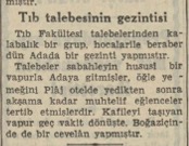 Tıb Fakültesi talebelerinden kalabalık bir grup, hocalarile beraber dün Adada bir gezinti yapmıştır.