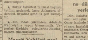 – Lodos fırtınasının şiddeti dolayısile dün İstanbul ile Adalar arasında vapur seferi yapılmamıştır.